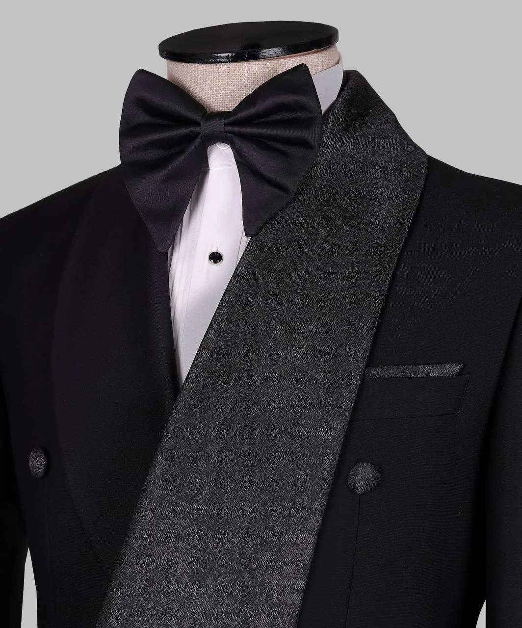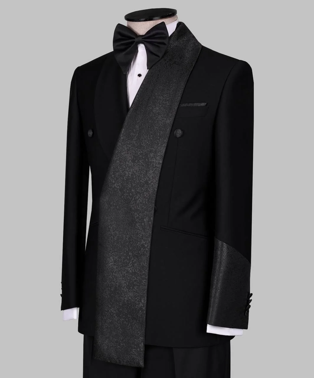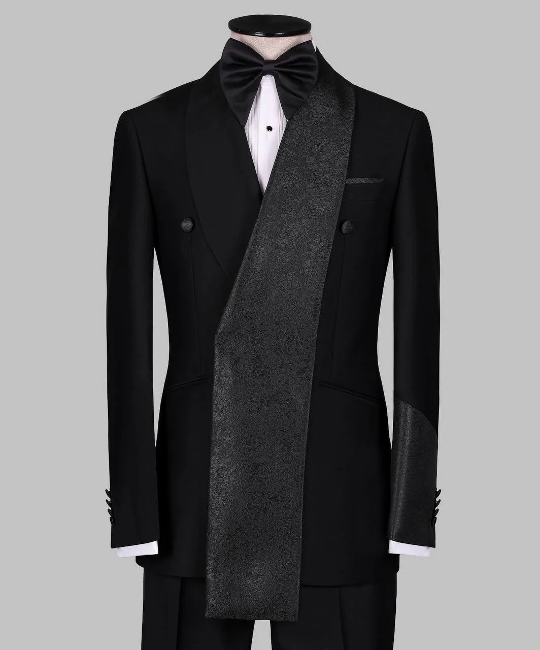 A creation of timeless luxury, the Bronze Royale Tuxedo Set merges classic tailoring with bold metallic artistry. Designed for refined occasions, this black double-breasted tuxedo is highlighted with a hand-applied bronze overlay, adding depth, sophistication, and a commanding presence.