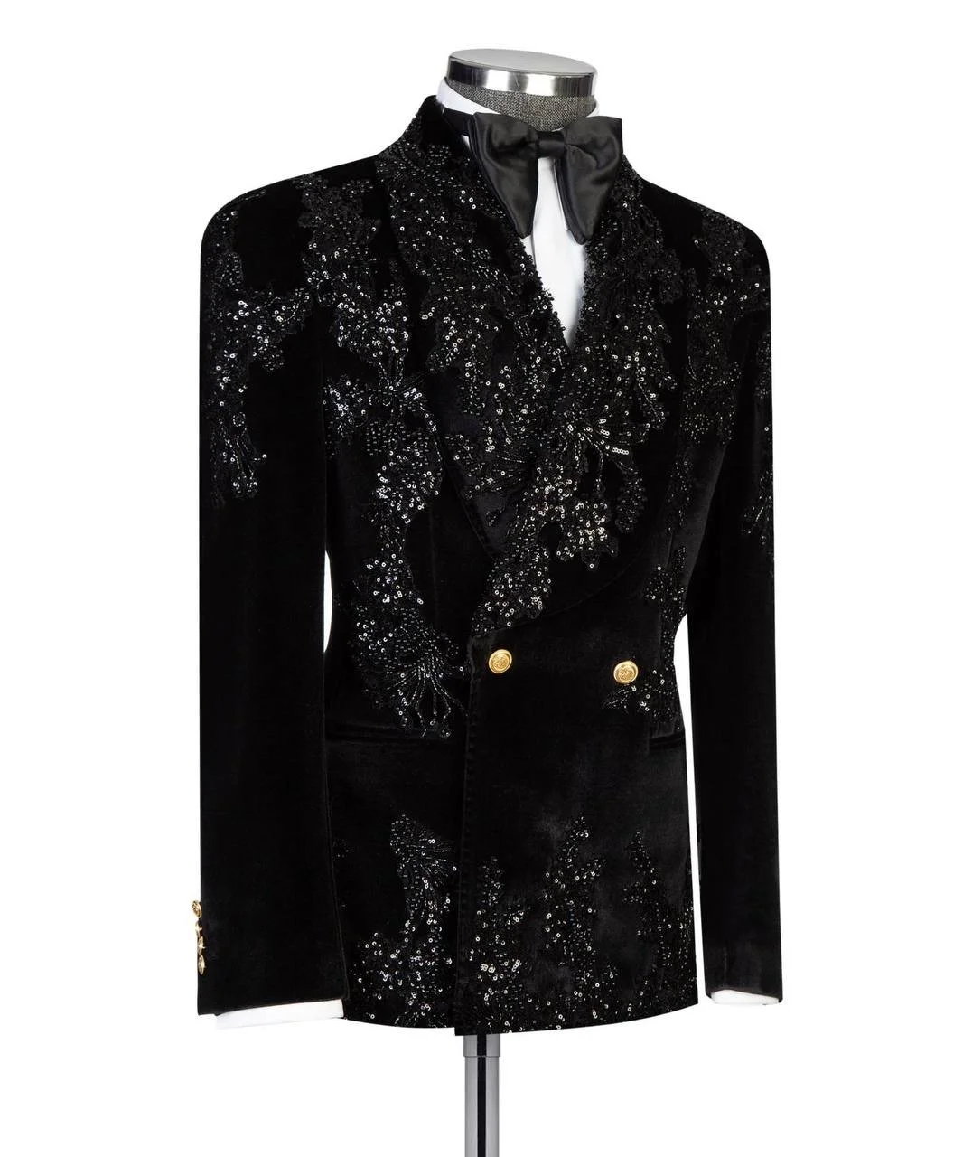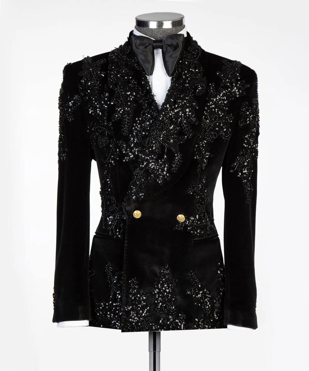 The Midnight Imperial Crystal Tuxedo is the definition of bold luxury and refined craftsmanship. Designed for the modern gentleman who commands attention, this exceptional piece features deep black velvet enriched with shimmering crystal embellishments that catch the light with every movement.