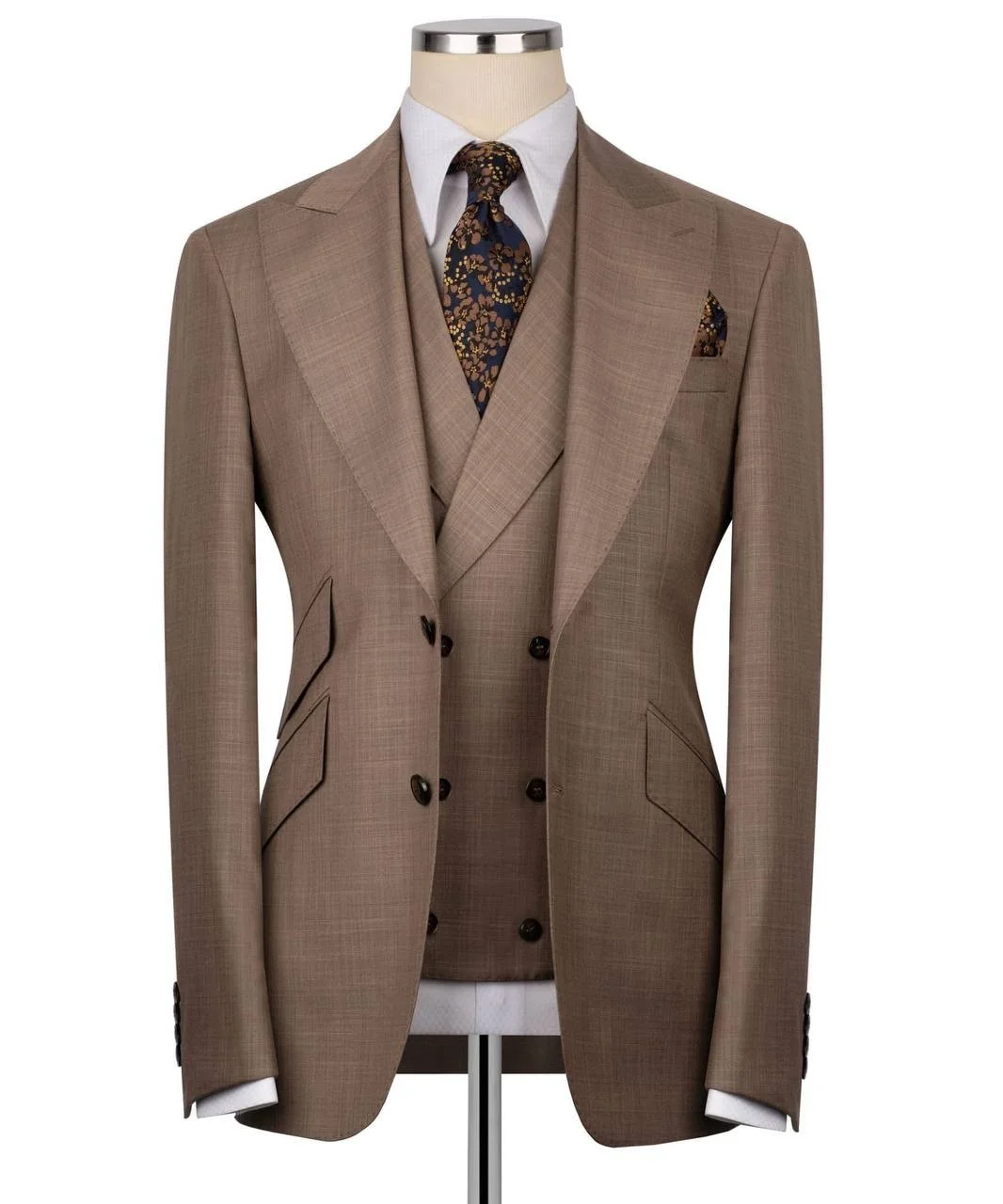 The Classic Three-Piece Suit Set is crafted for the gentleman who values calm confidence, timeless style, and effortless elegance. Presented in a refined taupe-light mocha tone, this suit exudes understated luxury — perfect for weddings, business events, evening functions, and premium lifestyle occasions.