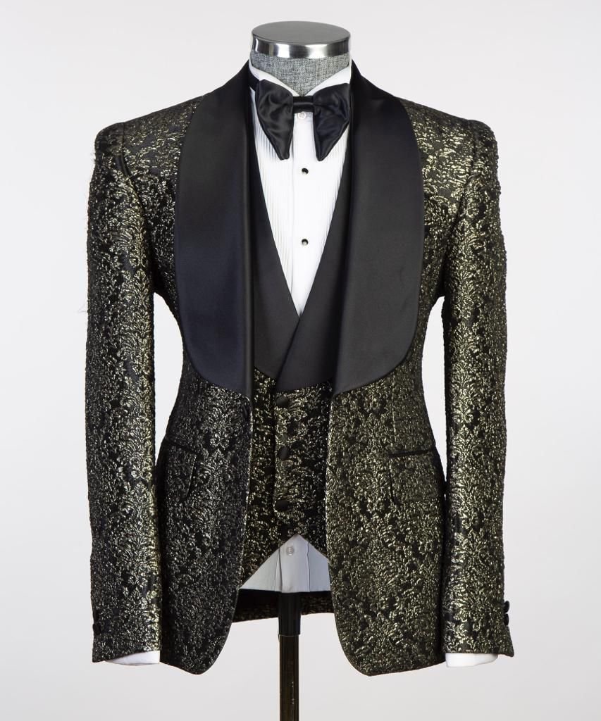 Turn every entrance into a statement with the Bronze Royale Textured Tuxedo Set by Noble Fit — a creation that blends power, precision, and prestige. This tuxedo captures the essence of luxury with its radiant metallic texture and sleek satin lapel, designed for men who embrace bold sophistication and command presence at every event.
