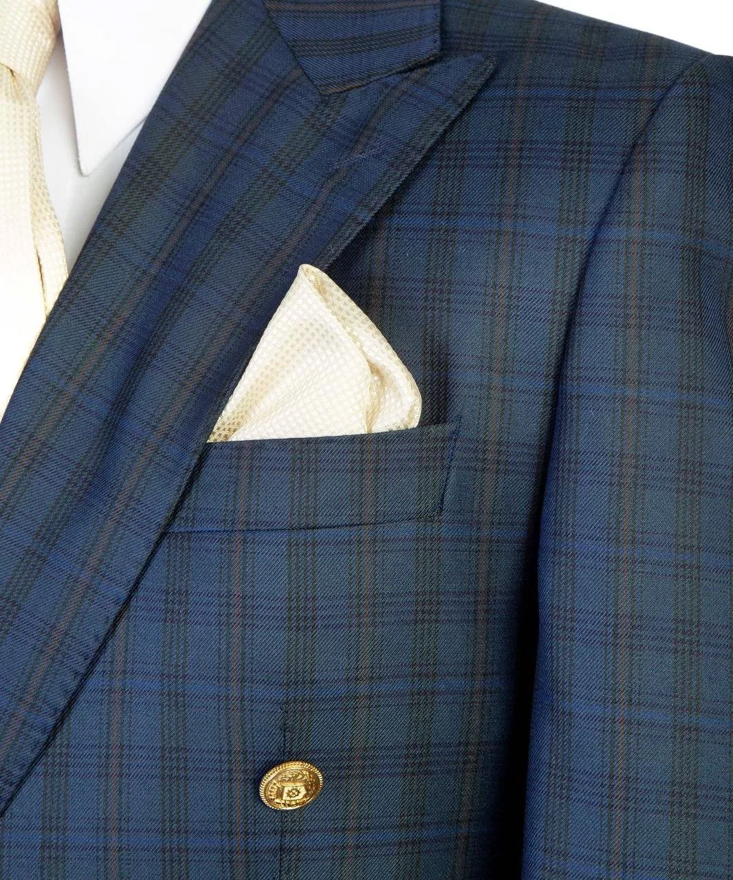 Step into refined elegance with the Azure Regent Double-Breasted Suit Set, a masterpiece crafted for men who embody confidence and class. Featuring a rich blue check pattern, premium gold buttons, and precision tailoring, this suit elevates your presence for weddings, galas, meetings, and every distinguished occasion.