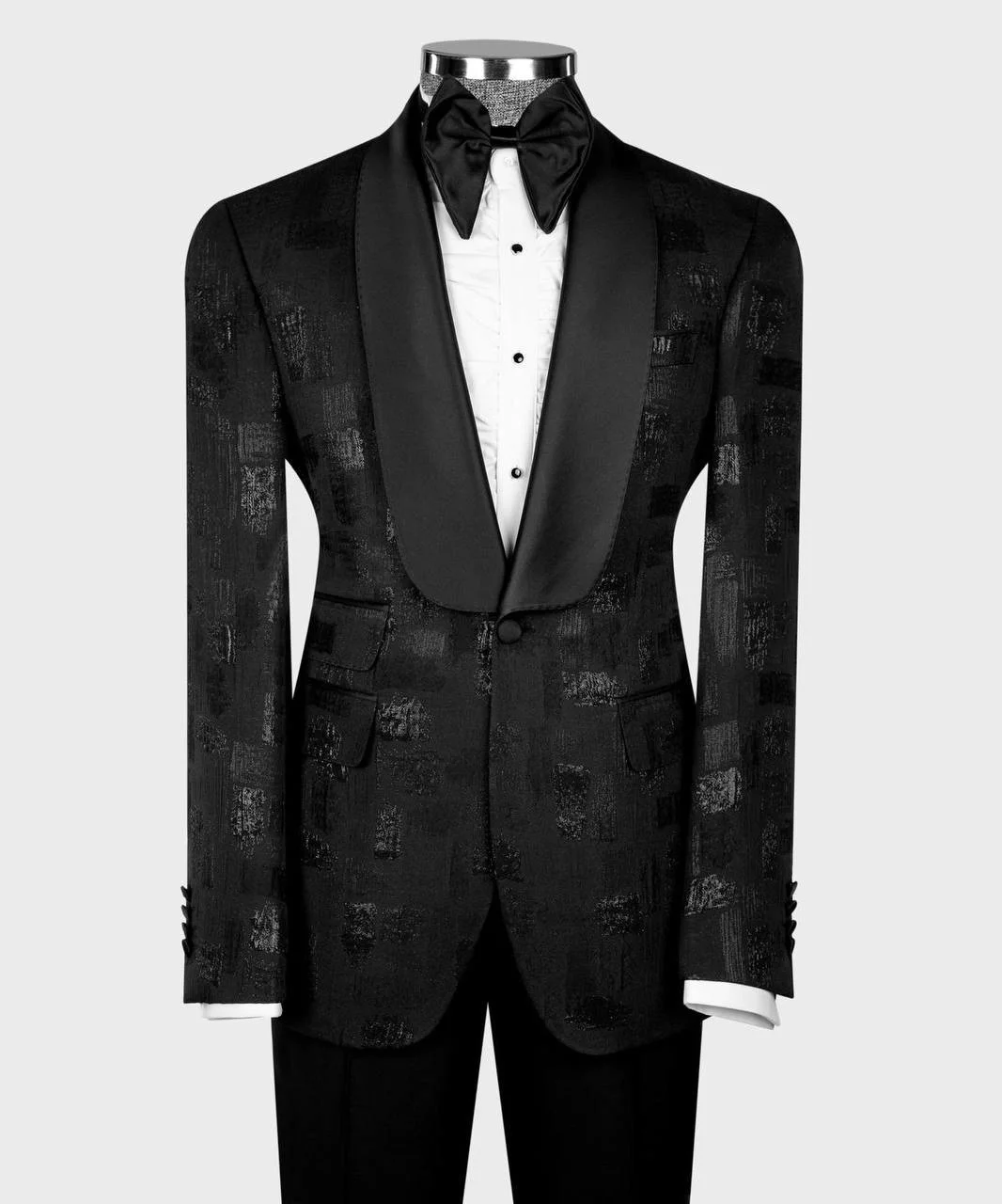 Step into sophistication with the Leaf-Pattern Textured Tuxedo Set — an artistic expression of elegance and power. Designed for the modern gentleman who values detail and distinction, this tuxedo blends a subtle leaf-inspired texture with a sleek satin shawl lapel, creating an aura of confidence and refined charm.