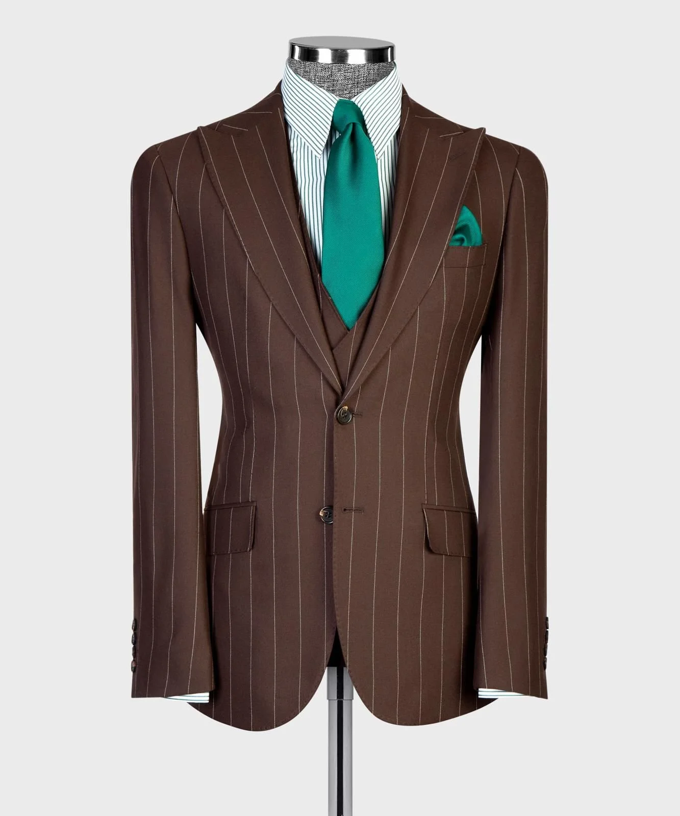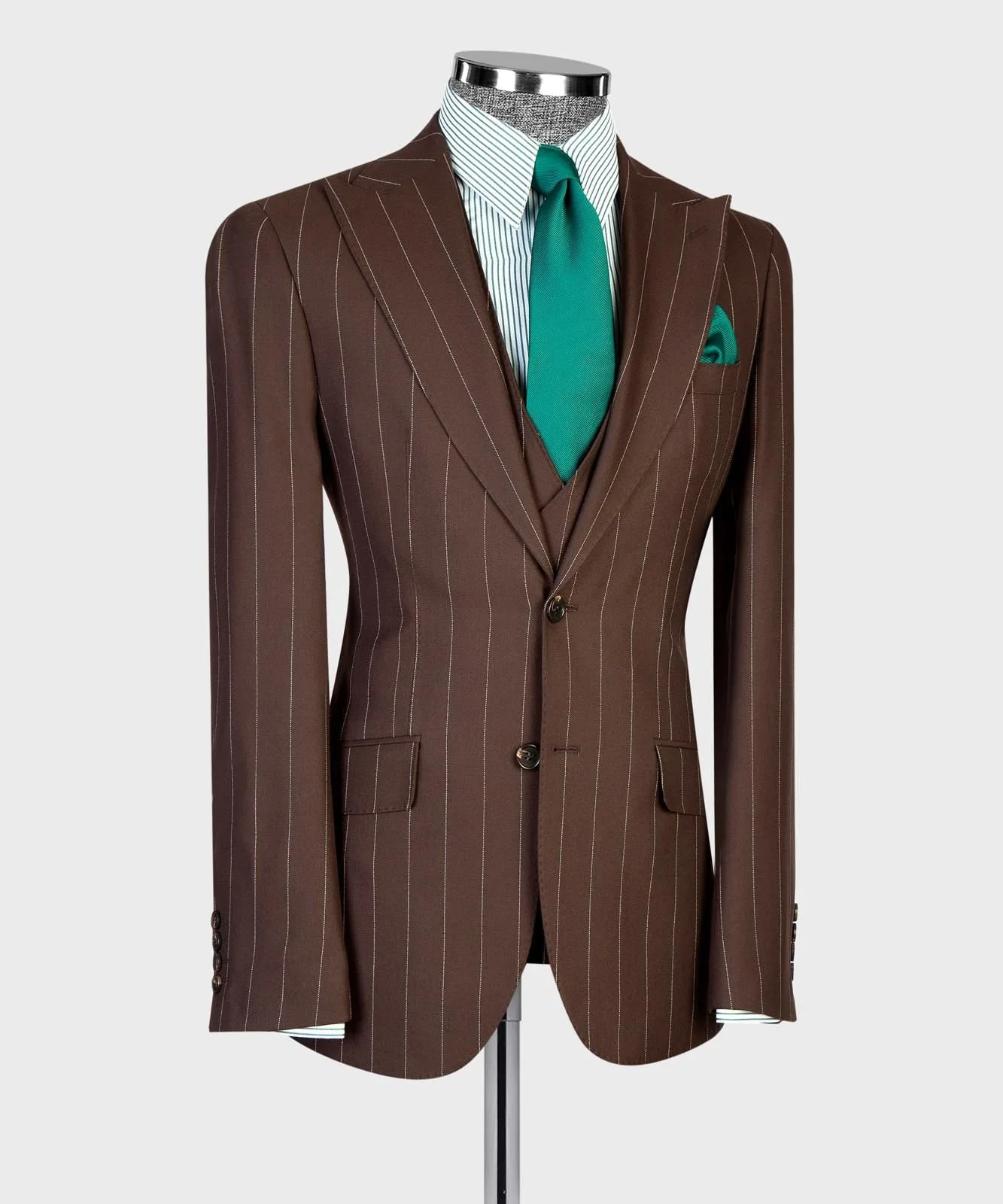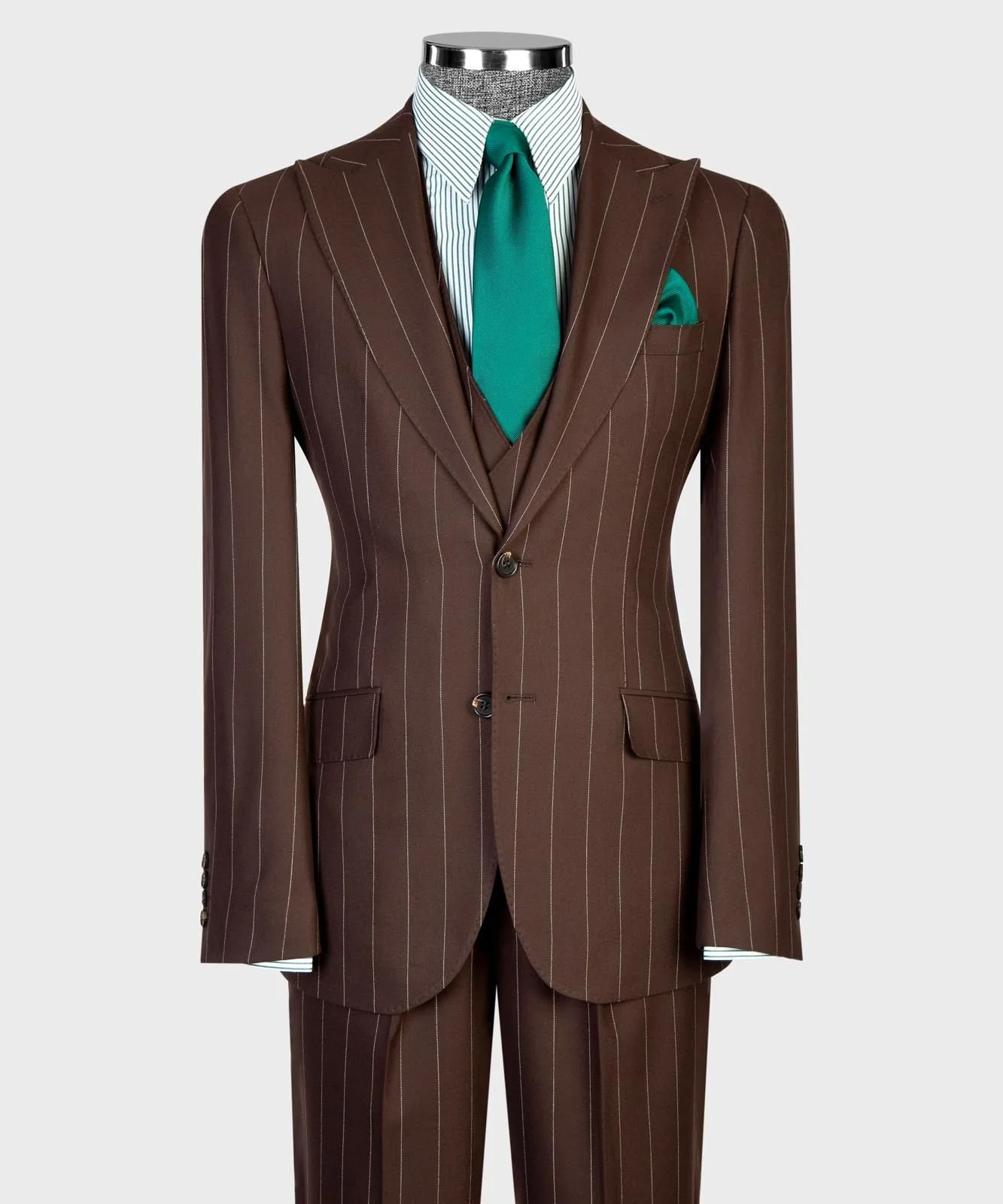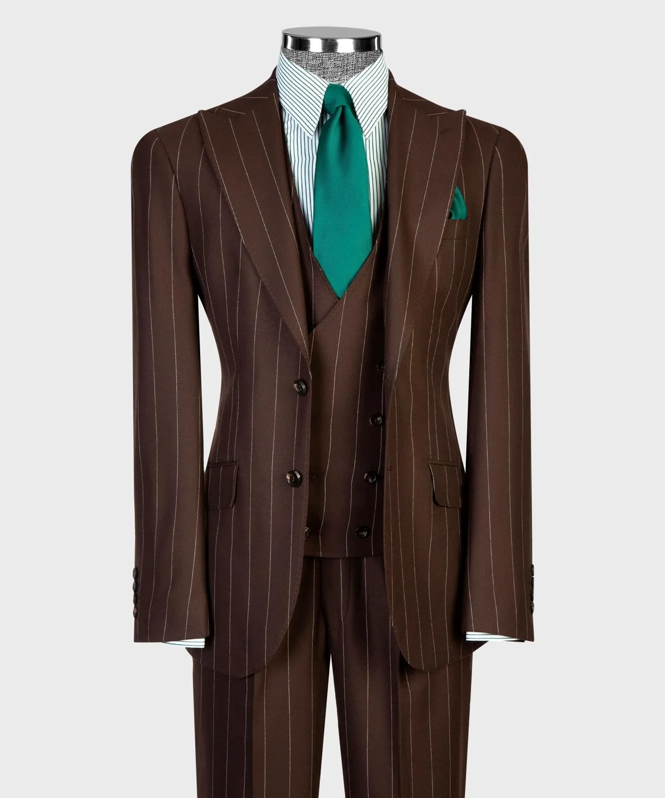 Espresso Monarch Pinstripe Suit (3-Piece Set)